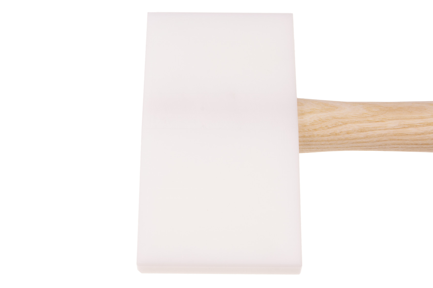Pleišto formos plaktuko galvutė, pagaminta iš atsparaus smūgiams plastiko (nesuskilinėja), suapvalinti kraštai, riešutmedžio rankena.