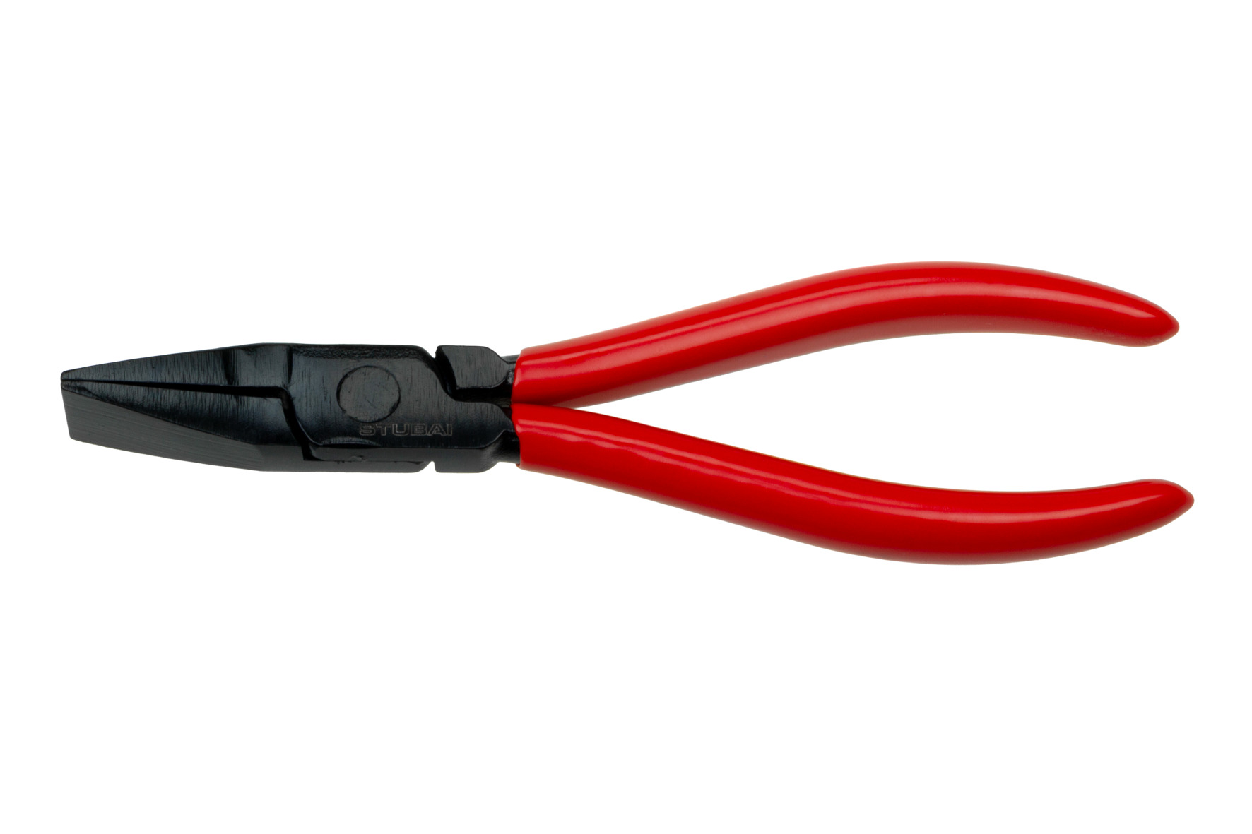 Kaltos, visiškai grūdintos, šiek tiek suapvalinti kraštai, raudonos plastiku dengtos rankenos, skirtos smulkiems, tiksliems lankstymo darbams.